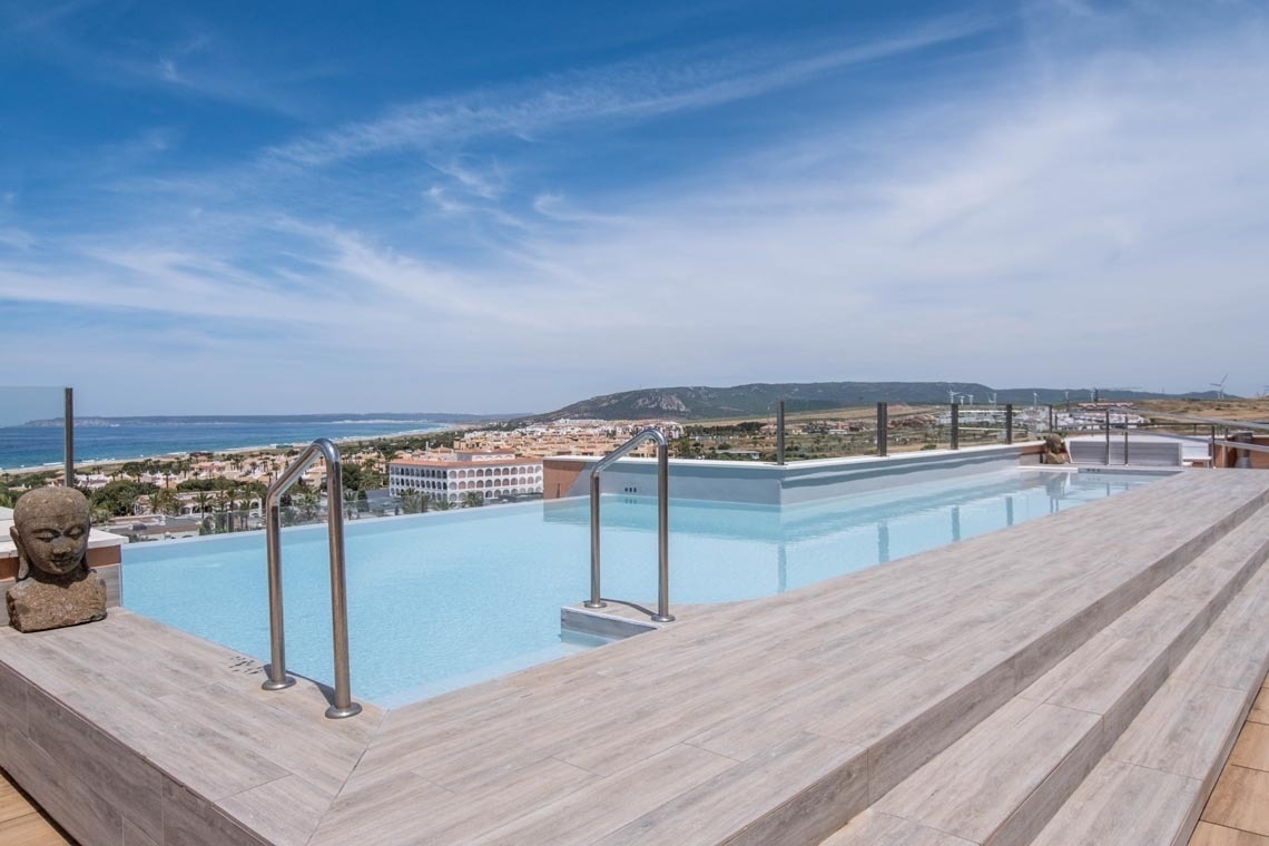 Our Sky Bar has been designed with your maximum comfort and relaxation in mind. Here you will find a cozy and sophisticated space, ideal for disconnecting from the daily hustle and bustle while you delight in the spectacular views offered by Zahara de los Atunes beach. Located in a privileged enclave, our bar high up offers you an incomparable panoramic view, allowing you to appreciate the vastness of the Atlantic Ocean and immerse yourself in the natural beauty of the Cádiz coast.